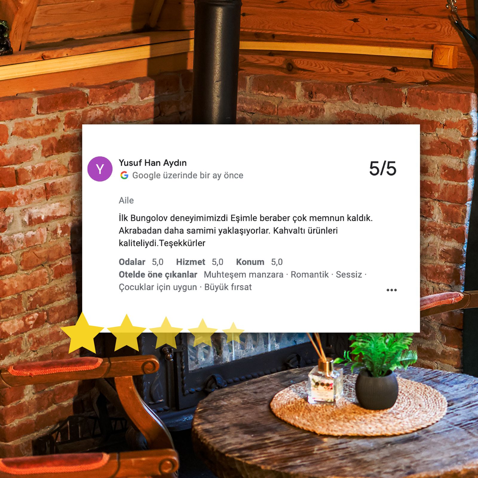 Bungalove Tatil Köyü, kendinizi evinizde gibi hissetmeniz için tasarlanmış lüks bungalov konaklama birimleri sunar. Doğa ile iç içe olan her bir bungalov, modern tasarım ve geleneksel dokunuşların mükemmel bir birleşimini yansıtır. Ferah ve rahat odalarımızda keyifli bir konaklama deneyimi yaşayın. Her odada özel teraslar, muhteşem orman manzaraları ve huzurlu anlar için ideal bir ortam sunar.
