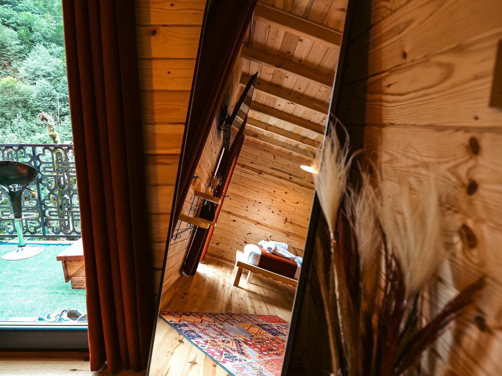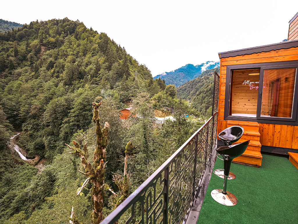 Tıny house dubleks olup 35 m2'dir. yaz aylarında kullanabileceğiniz şelale ve dağ manzaralı 15 m2'lik balkon terasımızın yanında jakuzi için ayrı bir bölüm bulunmaktadır. İçerisinde ücretsiz bir şekilde kullanabileceğiniz kahve makinesi ve çay seti bulunmaktadır. 3 adet çift kişilik yatak bulunup hep aile hemde arkadaş grubu için uygundur. Klima mevcuttur ve tamamen ahşap olup ısı yalıtımlıdır.